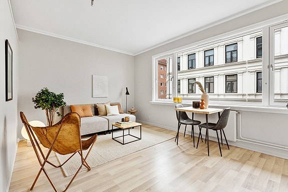 Leiligheten holder en gjennomgående høy standard og oppleves lys og luftig med god takhøyde og store vinduer.