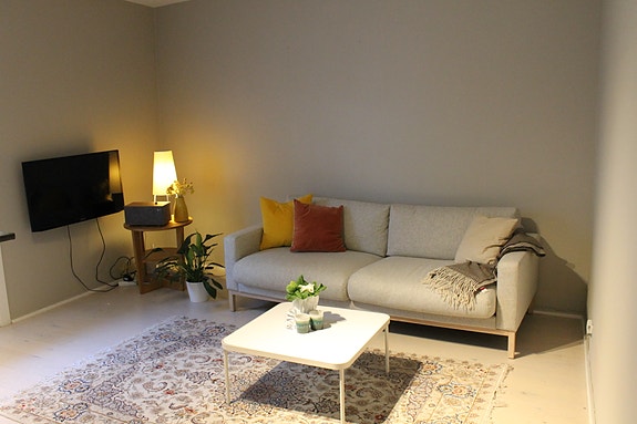 Møblert med Bolia-sofa, spisebord og øvrige møbler som gir en innbydende atmosfære.