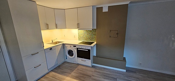 Leiligheten har vaskemaskin m/tørketrommel, oppvaskmaskin., platetopp, komfyr, kombi kjøl- og fryseskap.
