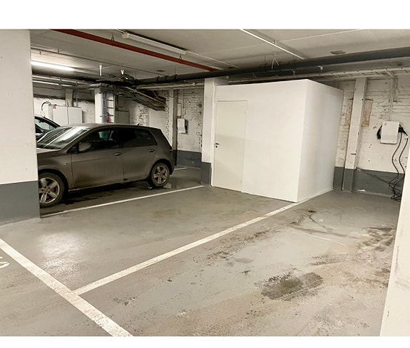 Garasjeplass med elbil-lader og med egen romslig bod.