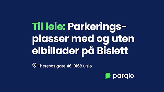 Månedsleie for plasser med elbilader: 1800 kr/m (3 plasser er ledige)