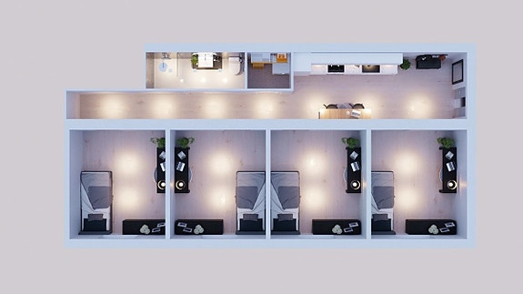 Et moderne, stille og praktisk sted å bo – perfekt for deg som vil ha en god studiehverdag og samtidig bo sosialt, men komfortabelt!
