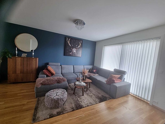 Velkommen til en lys og moderne leilighet på ca. 81 kvm, beliggende i et rolig og attraktivt område på Hundvåg i Stavanger. Boligen ble oppført i 2017 og holder en gjennomgående god standard. Leiligheten leies ut fullt møblert og passer godt for rolig par, liten familie eller profesjonelle som ønsker en komfortabel bolig i et hyggelig nabolag. Leiligheten har en romslig stue med åpen kjøkkenløsning som gir en luftig og sosial atmosfære. Store vindusflater slipper inn godt med naturlig lys og gjør oppholdsrommet lyst og innbydende. Boligen inneholder to gode soverom samt et ekstra rom som kan brukes som hjemmekontor eller oppbevaringplass, noe som gjør den spesielt godt egnet for dem som jobber delvis hjemmefra.