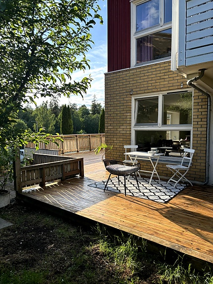 Vi har også stor hage, og Line dyrker blant annet tomater, agurk og jordbær – perfekt for deg som liker litt grønt rundt deg.