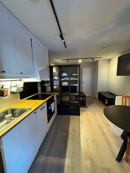 En areal-effektiv hybel med sovealkove. Hybelen er nylig nystilt, alt nytt. Kjøkken med integrerte hvitevarer, dobbelt kjøleskap med kjøl/frys. Balansert ventilasjon med eget aggregat og egen sone for hybelen. God lydisolering med betongdekke i etasjeskillet og betongvegg inn mot resten av huset. Nytt bad med fliser, dusjvegg som kan foldes inn og vaskemaskin. 140 bred seng i alkoven med god lagringsplass under. Vannbåren varme i gulvene.