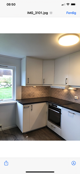 Del av kjøkken, og et av 3 vinduer ut mot hagen