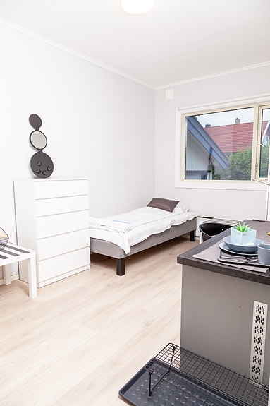 - Månedlig leiepris: Fra 8.500 kr, avhengig av hybelens størrelse.