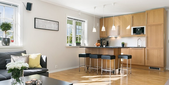 Fullt møblert leilighet kan diskuteres mot tillegg i pris (møblement i stuen er for illustrasjon).