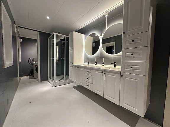 Alle soverom har seng, pult, kontorstol, stoler og skap. Fellesområdene har sofa, TV og 2 kjøkken fordelt på alle. Vaskemaskin og oppvaskmaskin er også på plass. Vi er fleksible hvis dere vil ha med egne møbler, det blir ingen endring i pris.