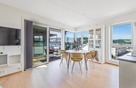 Nyere leilighet midt i Gjøvik sentrum med åpen stue- og kjøkkenløsning. Fra stuen er det adkomst til terrasse med mjøsutsikt. Kjøkkeninnredning med integrerte hvitevarer. Leiligheten har et soverom med garderobeskap som følger med.