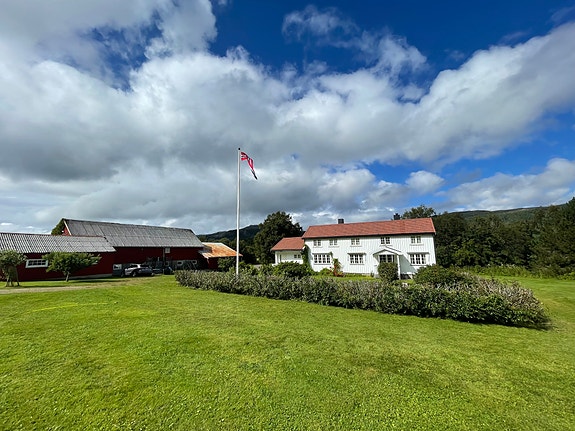 Småbruk i rolige omgivelser med stor hage og utmark.