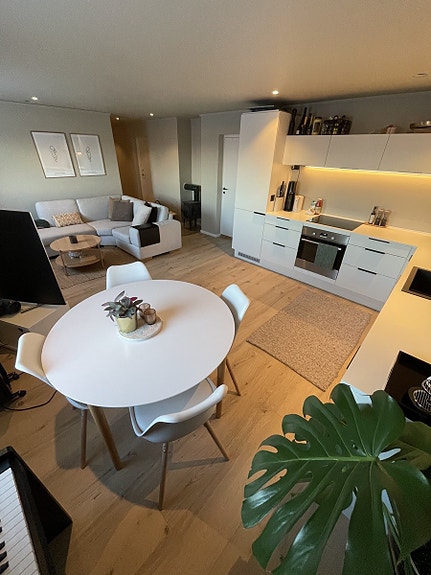 Leiligheten ble bygd i 2023 og standard er deretter. Leiligheten inneholder åpen stue-kjøkken med spisebord med plass til 8 personer, romslig sittegruppe og TV. Laminatgulv med naturlig eike-utseende, moderne og lyst inntrykk er gjennomgående for hele leiligheten.