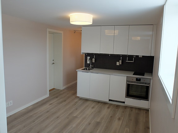 Ny hybel i 2017 til leie med vaskemaskin, oppvaskmaskin, komfyr, kjøleskap, varmekabler i alle gulv og utsikt mot Groruddalen. Ferdigstilt februar 2017.