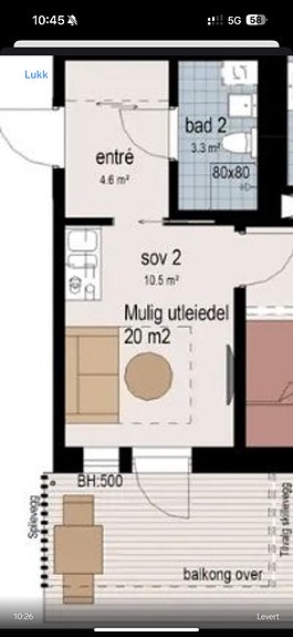 Standard: Kjøkkenet er moderne fra 2019/2020 med god lagringsplass og integrerte hvitevarer. Badet er flislagt og har en reflektorovn. Gulvene har gulvbelegg.