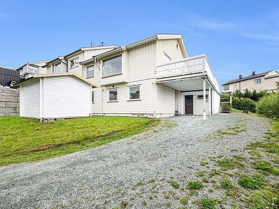 Leiligheten ligger i første etasje i tomannsbolig i et stille og etablert boligområde.