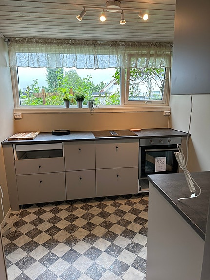 Nyoppusset kjøkken, venter på de siste skuffefrontene