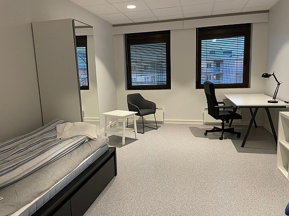 Beliggende i 3. etg i moderne bygg og er ikke loftsleiligheter men utgjør en hel etage i bygg hvor øvrig leietaker er bank. Velrennomert utleier og ordnede leieforhold. Hyblene er beregnet på studenter og personer med arbeidsforhold.