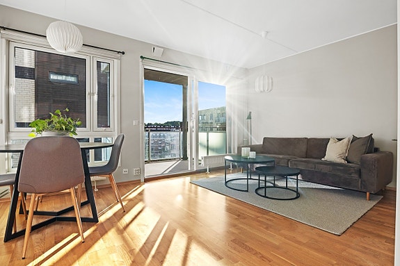Leiligheten ligger i attraktive Solsiden, med utsikt over Akerselva og nær restauranter, grøntarealer og treningsmuligheter. Akerselva byr på vakre turstier og badeplasser, og det er kort vei til Maridalsvannet. Storo Storsenter er 6 minutter unna til fots.