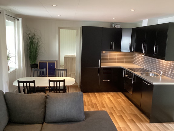 Hvite varer kjøkken - vaskemaskin - tørketrommel - sofa - spisestue - kjøkkenutstyr