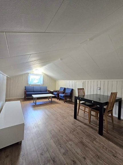 Ellers er det møblert med sofa, spisebord m/4 stoler og seng.