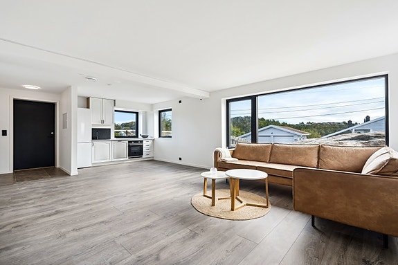 JUSTVIK - Lekker, ny 3-roms med parkering og terrasse.