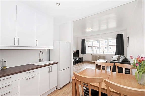 Leiligheten har vært utleid i mange år og pærer preg av vanlig bruksslitasje