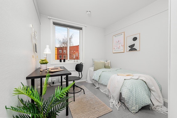 Hyblene i kollektivet er 12 kvm og har eget bad, oppbevaring og tilgang til internett. Kollektivet består av 7 hybler som deler ferdig møblert kjøkken og stue. Hyblene ligger fra 1 til 3 etasje.