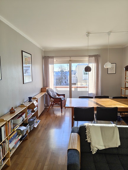 Klarer du deg uten oppvaskmaskin, har jeg 2 roms gjennomgående leilighet ved Bislett til leie fra ca 01.03.26 til 31.08.26. Leiligheten ligger i sjette (øverste) etasje i en stille og rolig gård, med loft over. Heis.