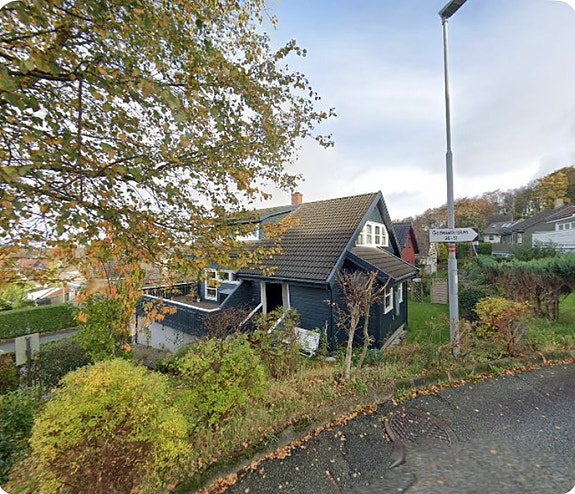 Rolig gate uten gjennomgangstrafikk, nær friområder/turområder.
