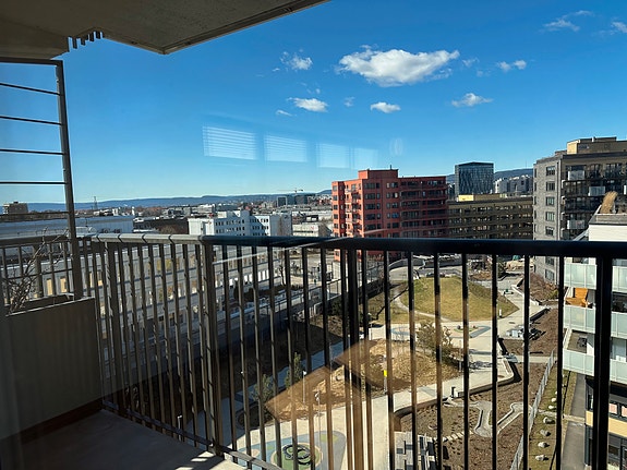Buss-holdeplass rett utenfor og 500 m til Økern t-banestasjon.