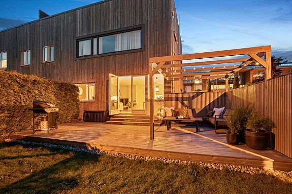 Uteplassen. (Foto fra salgsannonsen, avbildet møbler medfølger ikke)