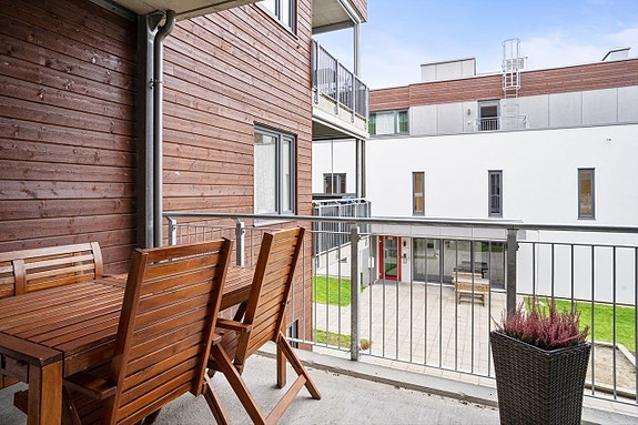 Tilbaketrukket leilighet med sovealkove, balkong og heis. Oppvarming, varmtvann og nett inkludert i husleie.