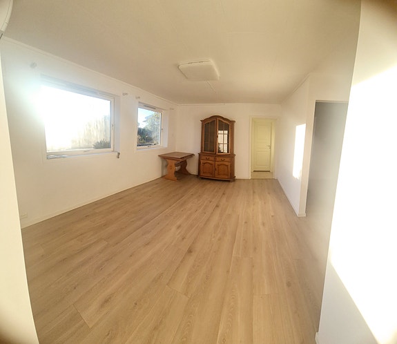 Stor og nyoppusset stue. Ekstrem solrik, både varmekabler på gulv og helt ny og energieffektiv varmepumpe.