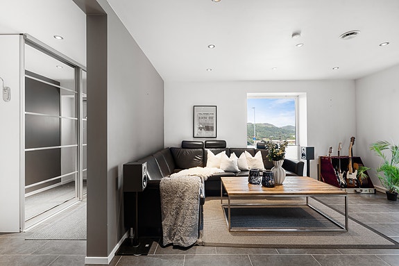 Gulv/tak samt yttervegger er av betong så leiligheten er godt lydisolert.