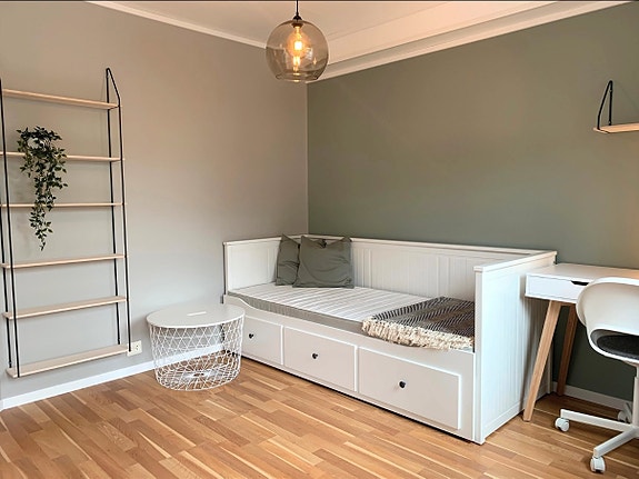 Hybelen er på ca. 20 kvm og ligger midt i hjertet av byen, med gangavstand til alt du trenger – matbutikk, kollektivtransport, høyskolen og kafeer.