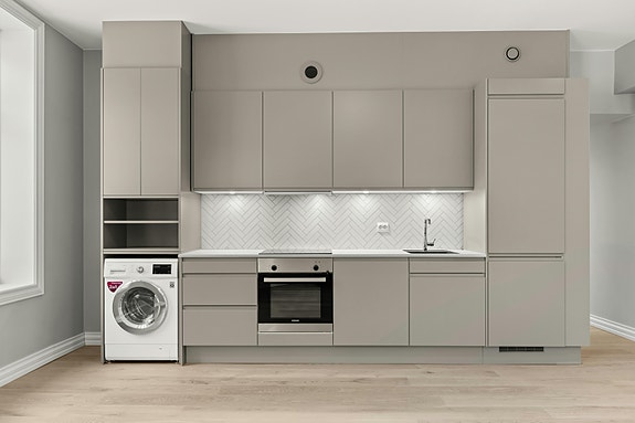 Interiørarkitekt har sikret optimale planløsninger og moderne utforming med smarte løsninger og lagringsmuligheter for hver og en av boenhetene.