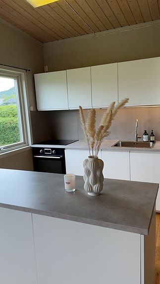 Stort, lyst og åpent. Bad, gang, åpen stue og kjøkken i 1. etg. To soverom + kontor og vaskerom i kjelleren.