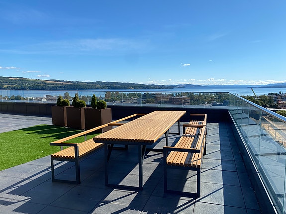 Som beboer får du tilgang til en felles takterrasse med fantastisk panoramautsikt over hele byen.