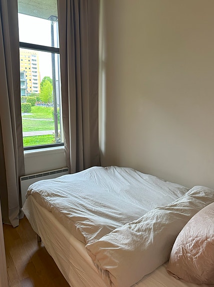 Leiligheten ligger i et rolig og trivelig område, og har enkel tilgang til kollektivtransport, dagligvarebutikker og kafeer. Rommet er kompakt, men funksjonelt, og egner seg godt som soverom for én person. Rommet er ferdig møblert med en seng, kommode og et nattbord - helt innflytningsklart. Selve soverommet er 6 kvm og total areal av hele leiligheten er 33 kvm.