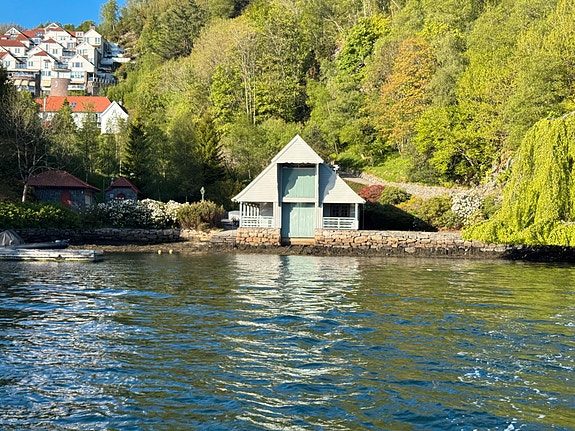 Eiendommen ligger innerst i Eidsvågsbukten, rett ved Bergen Golfklubb, en ser over til badeplassen Vollane, unike mulighet for bading, vannsport og padling. Her kan du ha båten liggende for fine turer på fjorden, fiske og krabbefiske. Kort vei til tur områder.