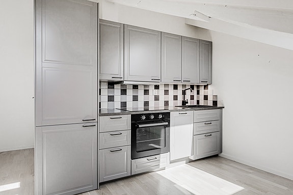Lys og lekker 2(3)-roms loftsleilighet med hems beliggende i 5. etasje. Hjemmet kombinerer moderne standard med klassisk sjarm som takbjelker, skråtak og hems på en stilfull måte.