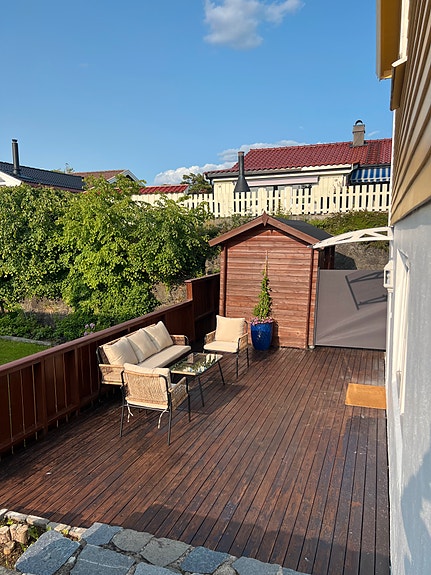 Medfølger komfyr, kjøleskap, varmepumpe og vaskemaskin. Delvis møblert. Kort vei til bussholdeplass, byen, Wrightegaarden, flotte turmuligheter, fotballbane på utsiden av døra og Coop butikk. Leiligheten befinner seg i en stille og rolig blindgate med flotte gåmuligheter til strender som Badet, Krogshavn og Steinvika.