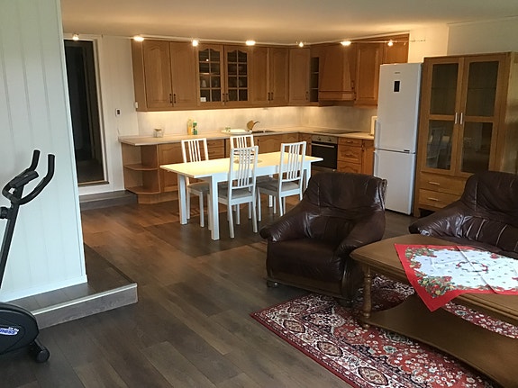 Strøm er ikke inkludert i leien. Har egen bimåler. Leies ut ned vaskemaskin ,kjøl/ frys.mikro. Oppvaskmaskin ,komfyr. En seng 150 cm og en 180 cm, møbler som vist på bilder.