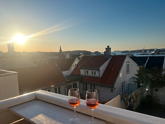 Her har du muligheten til å leie en særegen og velholdt enebolig med nydelig utsikt, solrik uteplass og en helt spesiell atmosfære. Boligen kombinerer det beste av gammelt og nytt – med originale tømmervegger og moderne løsninger som gir en varm og innbydende stil.