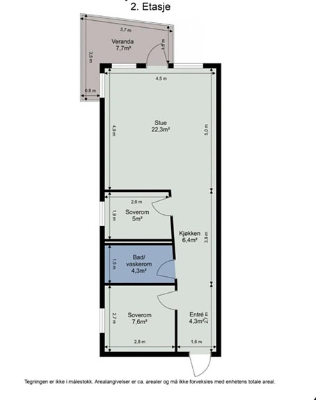 Lys og moderne leilighet med god planløsning