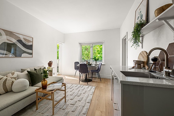 Pen og romslig 2-roms med attraktiv beliggenhet på Sagene/Bjølsen. Leiligheten består av en entré med praktisk innvendig bod, romslig stue med plass til sofagruppe og spisebord. Soverommet er lyst og romslig med plass til dobbeltseng. Kjøkken har bra med skapplass. Flislagt bad med opplegg for vaskemaskin.