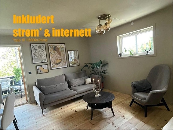Leiesummen inkluderer internett og felleskostnader. Med mindre strømregninga overstiger 1500kr/mnd er den også inkludert.