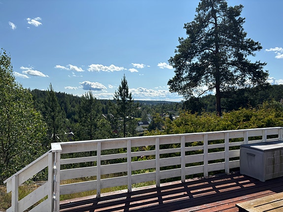Stor usjenert veranda med ettermiddags og kveldssol.