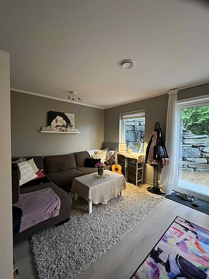 Hybel til leie i rolig område med usjenert uteplass og parkering. Strøm er inklusiv i utleie (vannbåren varme).