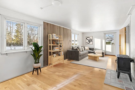 .Romslig stue med god plass til en spisestue